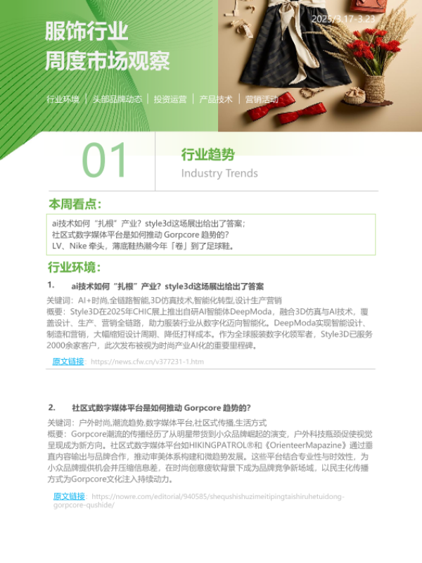 【艾瑞咨询】【20250317】服饰行业周度市场观察-5页 行业研究