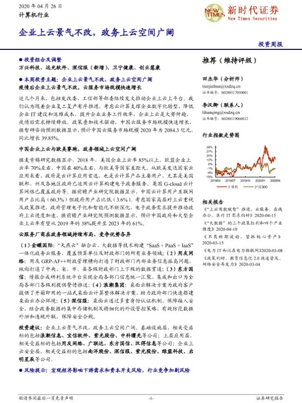 【新时代证券】【20200426】计算机行业投资周报:企业上云景气不改,政务上云空间广阔-19页 行业研究