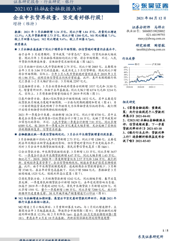 【东吴证券】【20210412】2021 03 社融&金融数据点评:企业中长贷再放量,坚定看好银行股!-5页 行业研究