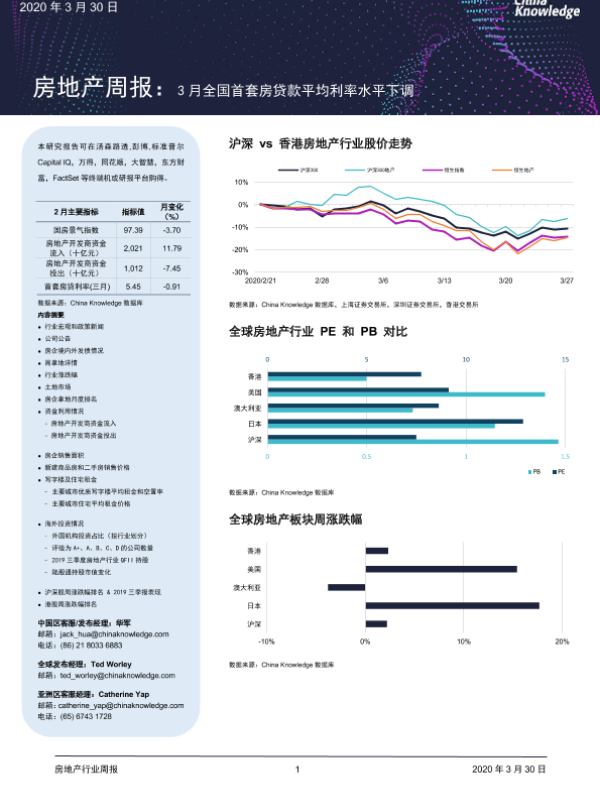 【China Knowledge】【20200330】房地产周报:3月全国首套房贷款平均利率水平下调-21页 行业研究