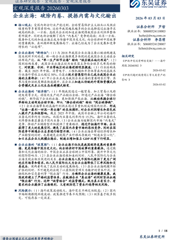 【东吴证券】【202603】企业出海:破除内卷、提振内需与文化输出-18页 证券期货研究报告