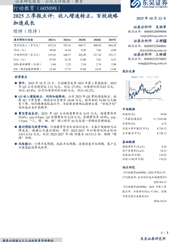 【东吴证券】【202510】2025三季报点评:收入增速转正,百校战略加速成长-3页 证券期货研究报告