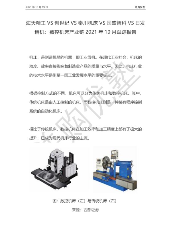 【并购优塾】【20211019】数控机床产业链2021年10月跟踪报告:海天精工VS创世纪VS秦川机床VS国盛智科VS日发精机-29页 行业研究