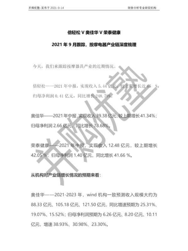 【并购优塾】【20210914】2021年9月跟踪,按摩电器产业链深度梳理-23页 行业研究