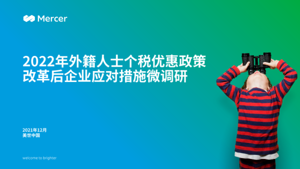 【美世中国】【202112】2022年外籍人士个税优惠政策改革后企业应对措施微调研-21页 行业研究