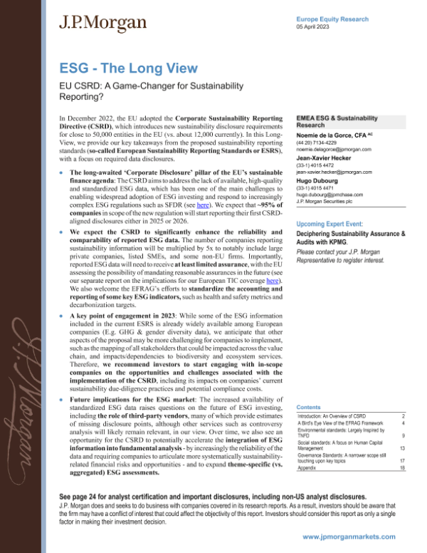 【J.P. Morgan】【20230405】JPMorgan-ESG - The Long View EU CSRD A Game-Changer for Sustainability Reporting-27页 行业研究