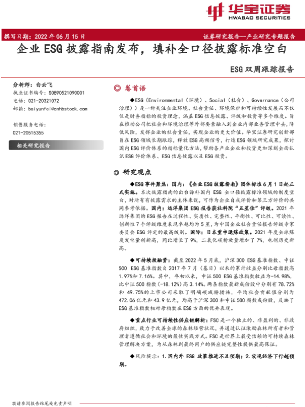 【华宝证券】【20220616】企业ESG披露指南发布,填补全口径披露标准空白-16页 行业研究