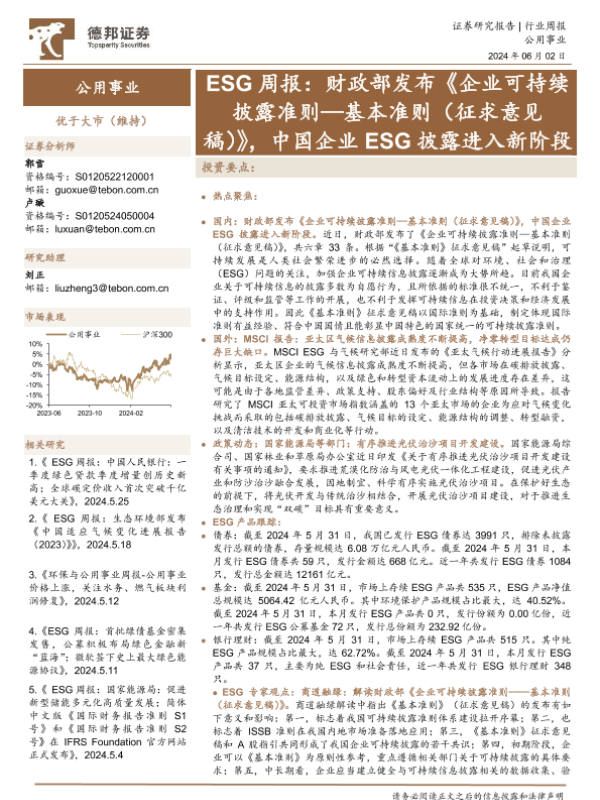 【德邦证券】【20240602】ESG周报:财政部发布《企业可持续披露准则—基本准则(征求意见稿)》,中国企业ESG披露进入新阶段-17页 行业研究