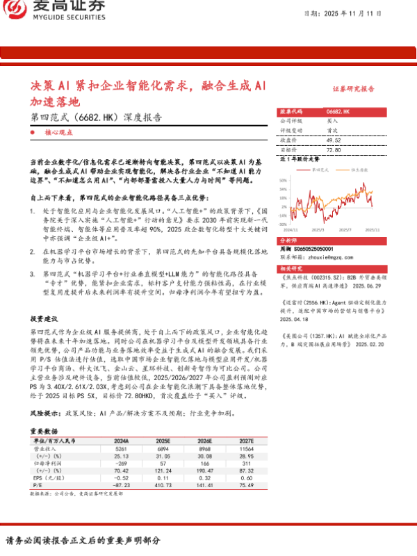 【麦高证券】【202511】决策 A I紧扣企业智能化需求,融合生成 A I加速落地-30页 证券期货研究报告