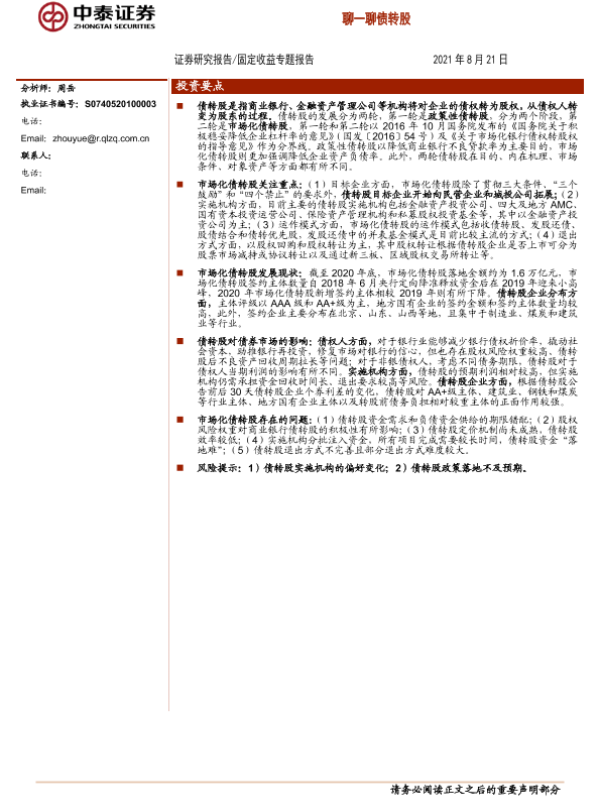 【中泰证券】【20210821】固定收益专题:聊一聊债转股-35页 行业研究