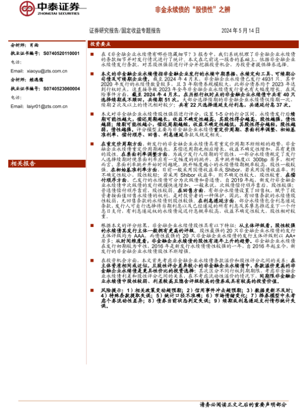 【中泰证券】【20240514】固定收益专题报告:非金永续债的“股债性”之辨-20页 行业研究