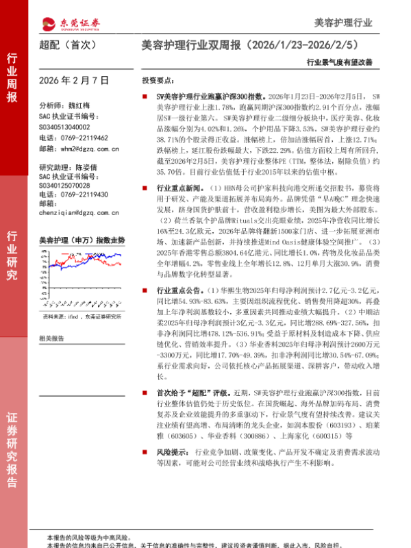 【东莞证券】【202602】美容护理行业双周报(2026/1/23-2026/2/5)-8页 证券期货研究报告