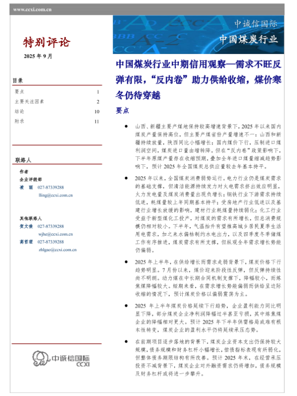 【中诚信国际】【202509】中国煤炭行业中期信用观察—需求不旺反弹有限,“反内卷”助力供给收缩,煤价寒-12页 行业研究