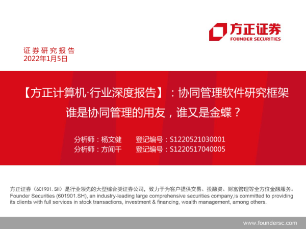 【方正证券】【20220105】【方正计算机·行业深度报告】:协同管理软件研究框架,谁是协同管理的用友,谁又是金蝶?-70页 行业研究