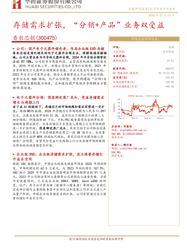 【华西证券】【20250715】香农芯创(300475)存储需求扩张,“分销%2b产品”业务双受益-23页 证券期货研究报告