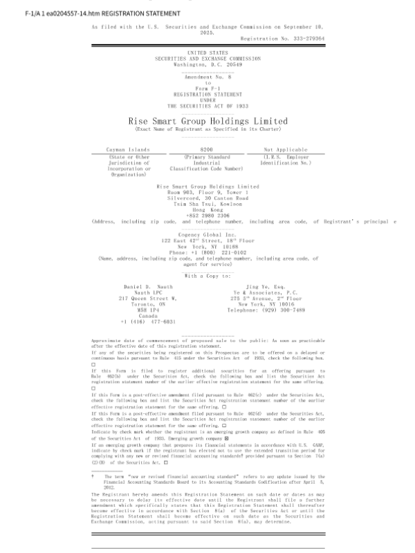 【Rise Smart Group Holdings Limited】【202509】Rise Smart Group Holdings Ltd. (RSHL) US IPO Prospectus F-1 (2025-09-11 revised version) (English version) (183 pages).pdf-183页 招股书