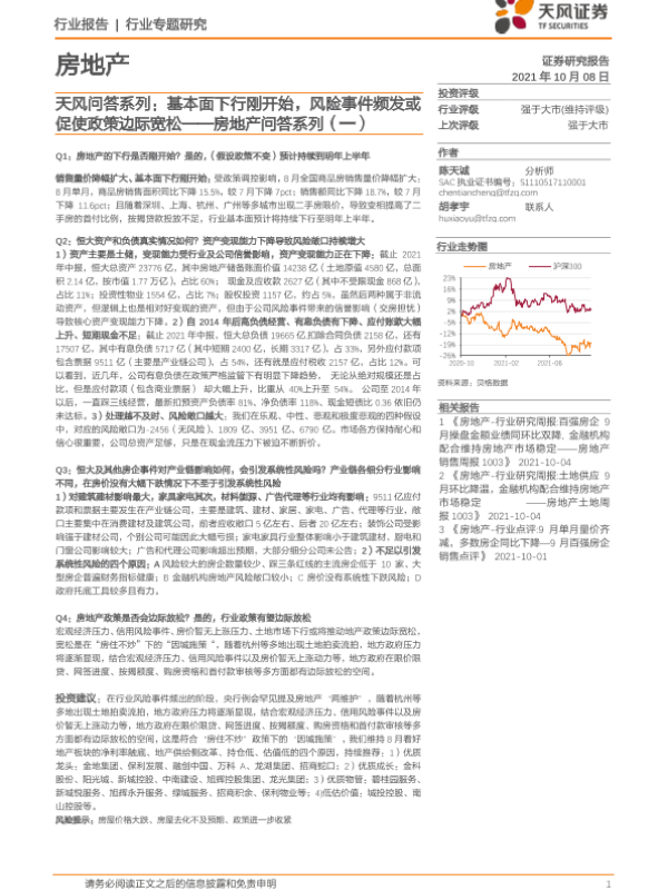 【天风证券】【20211008】天风问答系列:基本面下行刚开始,风险事件频发或促使政策边际宽松-13页 行业研究