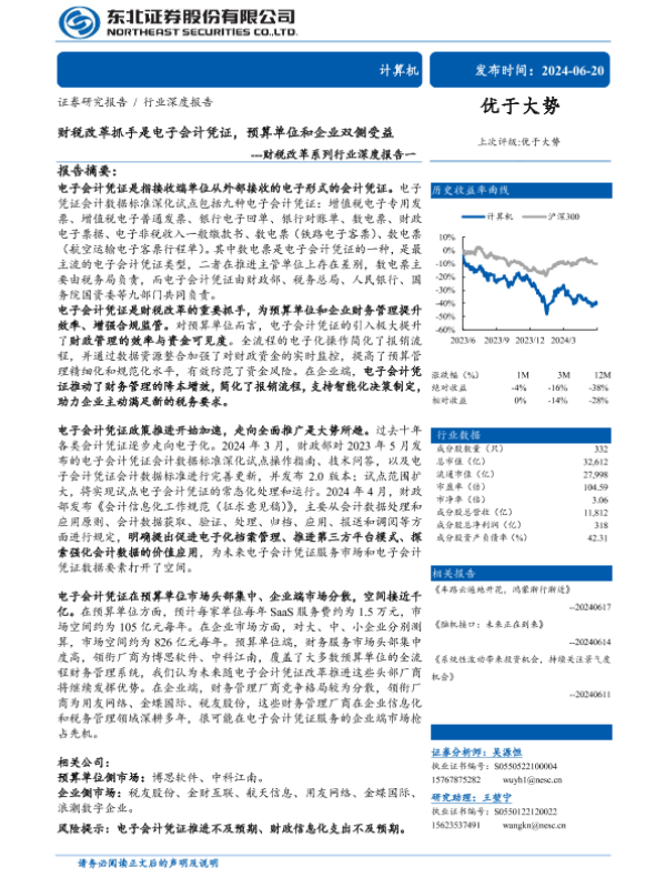 【东北证券】【20240620】财税改革抓手是电子会计凭证,预算单位和企业双侧受益---财税改革系列行业深度报告一-30页 行业研究