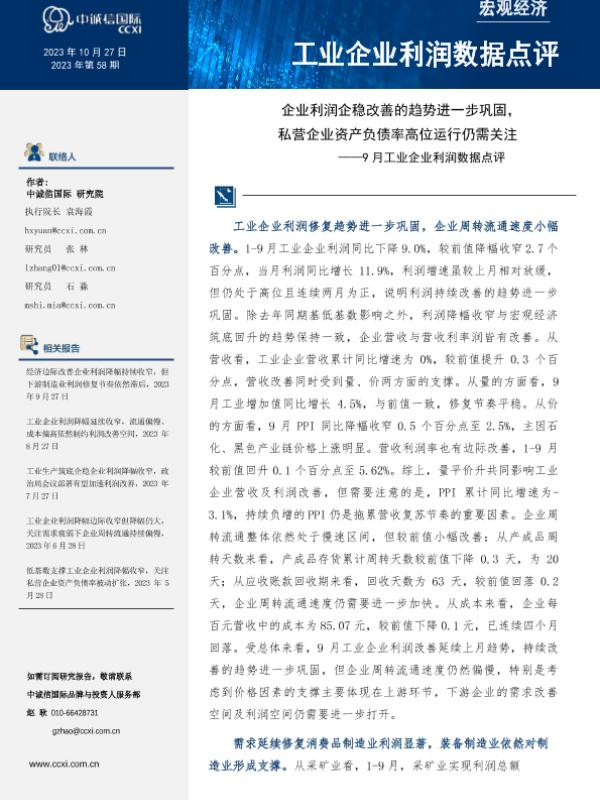 【中诚信国际】【202310】企业利润企稳改善的趋势进一步巩固,私营企业资产负债率高位运行仍需关注-6页 行业研究