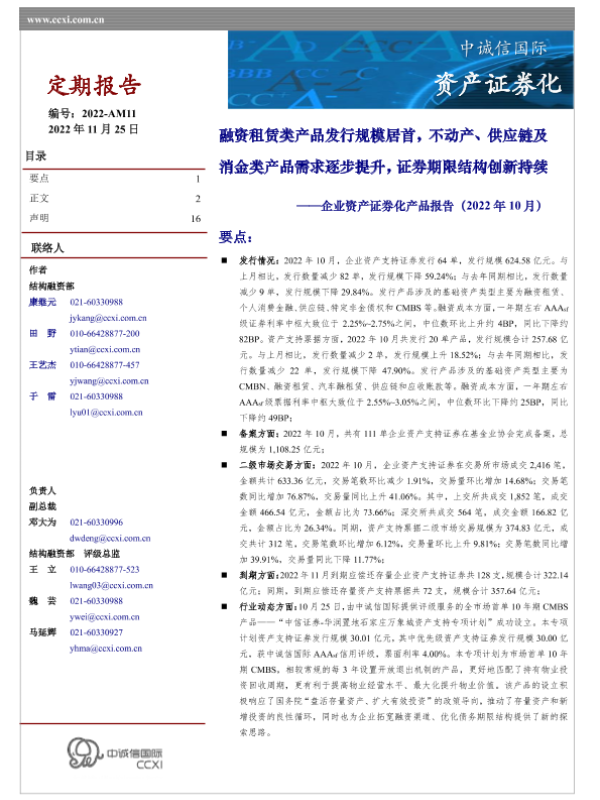 【中诚信国际】【20221001】中诚信-企业资产证券化产品报告(2022年10月)-16页 行业研究