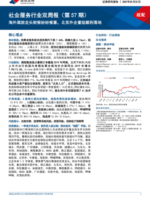 【国信证券】【20230522】社会服务行业双周报:海外酒旅龙头财报纷纷报喜,北京外企重组顺利落地-15页 行业研究