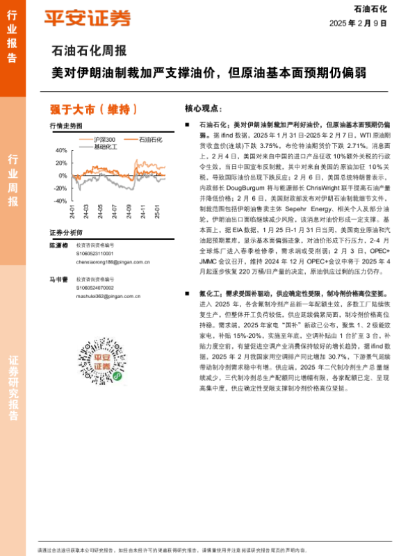 【平安证券】【20250209】20250209-平安证券-石油石化行业周报:美对伊朗油制裁加严支撑油价,但原油基本面预期仍偏弱-15页 行业研究