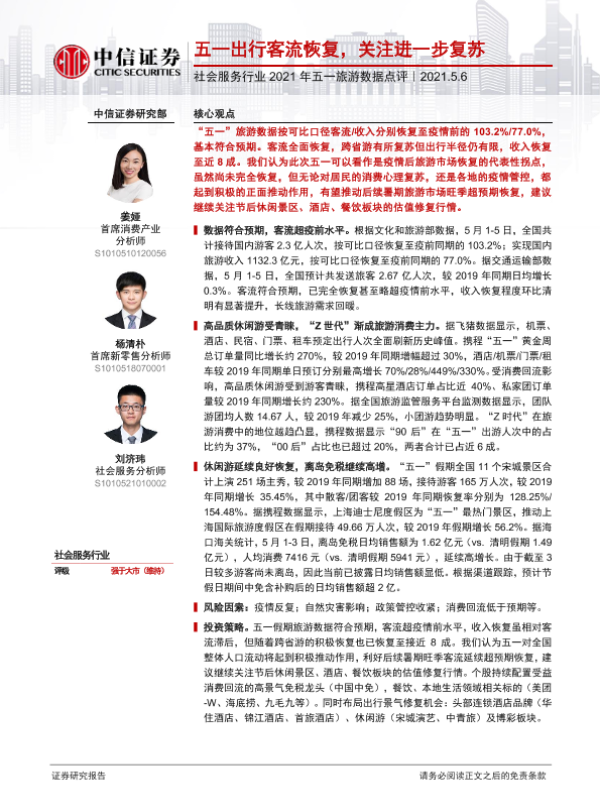 【中信证券】【20210506】2021年五一旅游数据点评-9页 行业研究
