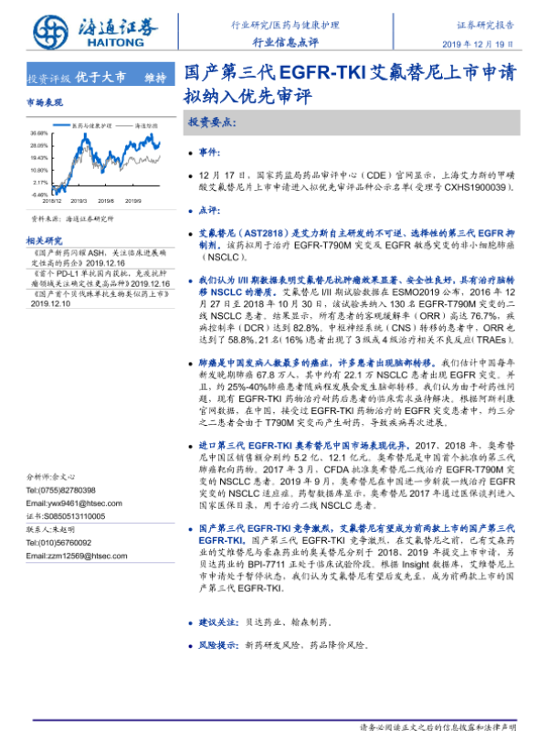 【海通证券】【20191219】国产第三代EGFR-TKI艾氟替尼上市申请拟纳入优先审评-2页 行业研究