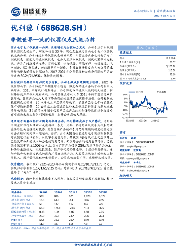 【国盛证券】【20220210】优利德(688628.SH)争做世界一流的仪器仪表民族品牌-24页 行业研究