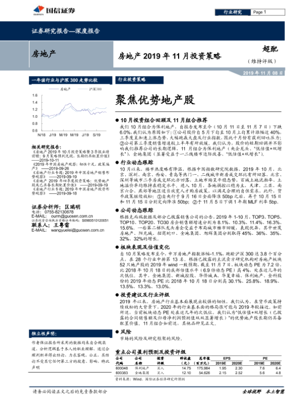 【国信证券】【20191108】房地产2019年11月投资策略:聚焦优势地产股-11页 行业研究