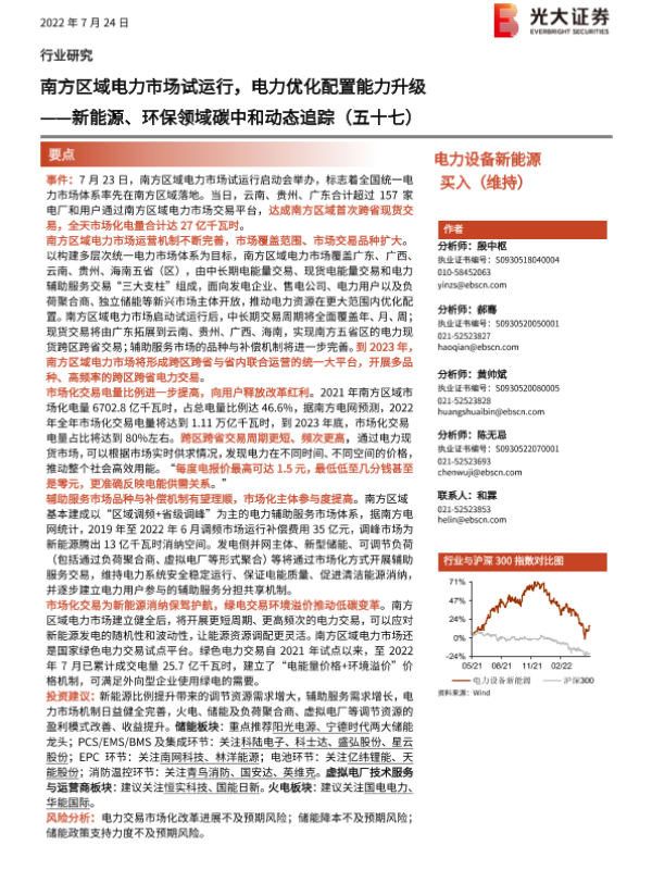 【光大证券】【20220724】南方区域电力市场试运行,电力优化配置能力升级-2页 行业研究