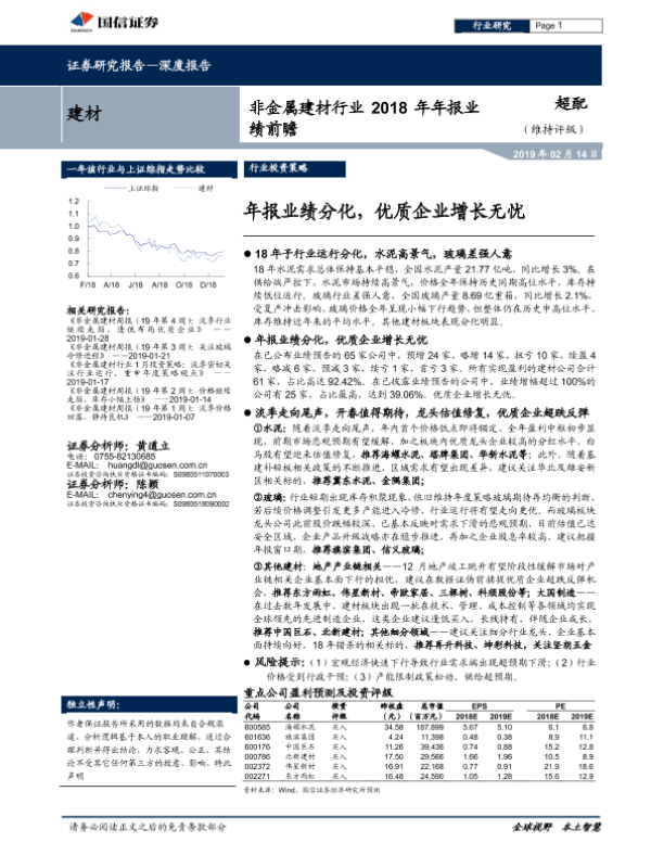 【国信证券】【20190214】非金属建材行业2018年年报业绩前瞻-19页 行业研究