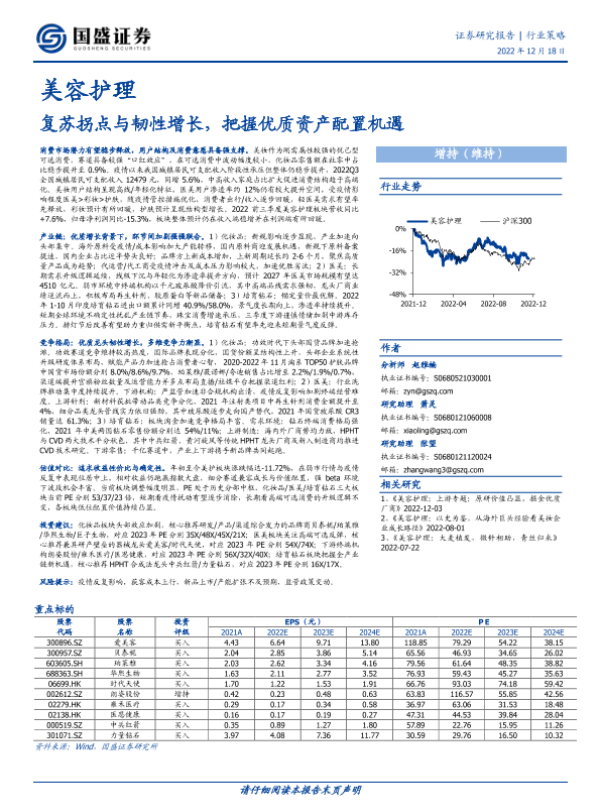 【国盛证券】【20221218】美容护理行业策略:复苏拐点与韧性增长,把握优质资产配置机遇-48页 行业研究