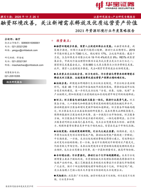 【华宝证券】【20201126】2021年资源环境行业年度策略报告-39页 行业研究