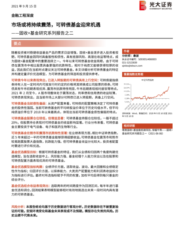 【光大证券】【20210915】固收+基金研究系列报告之二:市场或将持续震荡,可转债基金迎来机遇-24页 行业研究
