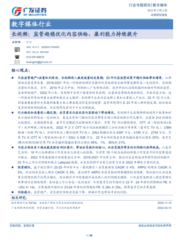 【广发证券】【20230206】长视频:监管趋稳优化内容供给,盈利能力持续提升-48页 行业研究