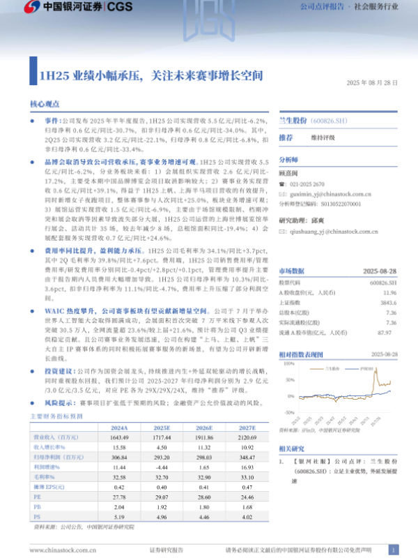【银河证券】【20250828】兰生股份-1H25业绩小幅承压-关注未来赛事增长空间-3页 证券期货研究报告