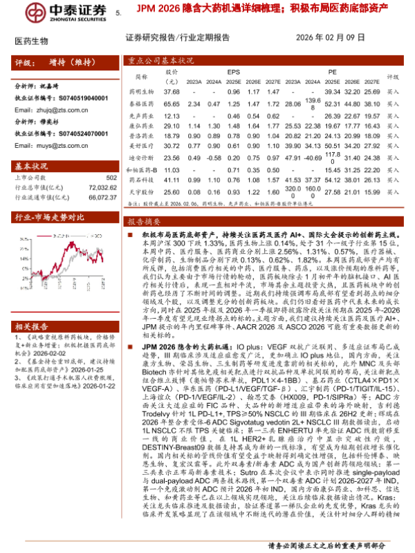 【中泰证券】【202602】医药生物行业:JPM+2026隐含大药机遇详细梳理;积极布局医药底部资产-15页 证券期货研究报告