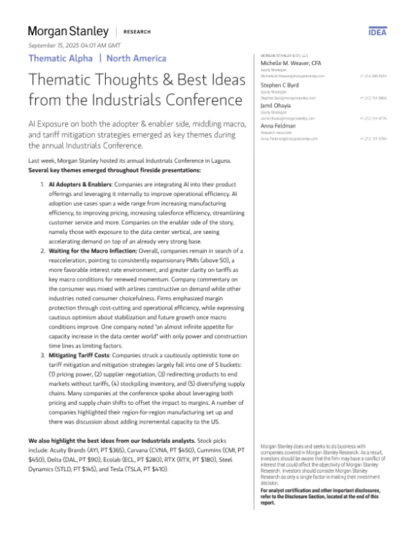【Morgan Stanley】【202509】Thematic Alpha North America - Thematic Thoughts & Best Ideas from the Industrials Conference-31页 证券期货研究报告