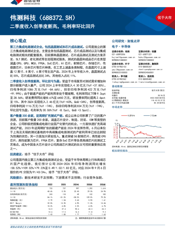 【国信证券】【20240909】伟测科技(688372)二季度收入创季度新高,毛利率环比回升-16页 行业研究