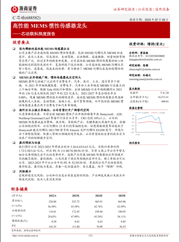 【浙商证券】【20230706】芯动联科深度报告(688582):高性能MEMS惯性传感器龙头-21页 行业研究