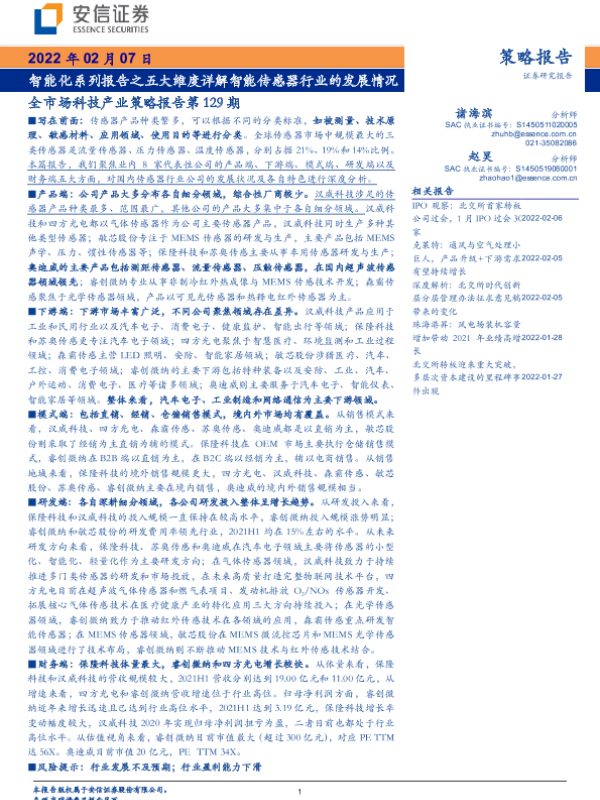 【安信证券】【20220207】2022.02.07-全市场科技产业策略报告第129期:智能化系列报告之五大维度详解智能传感器行业的发展情况-62页 行业研究