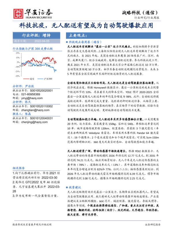 【华安证券】【20220405】科技抗疫,无人配送有望成为自动驾驶爆款应用-15页 行业研究