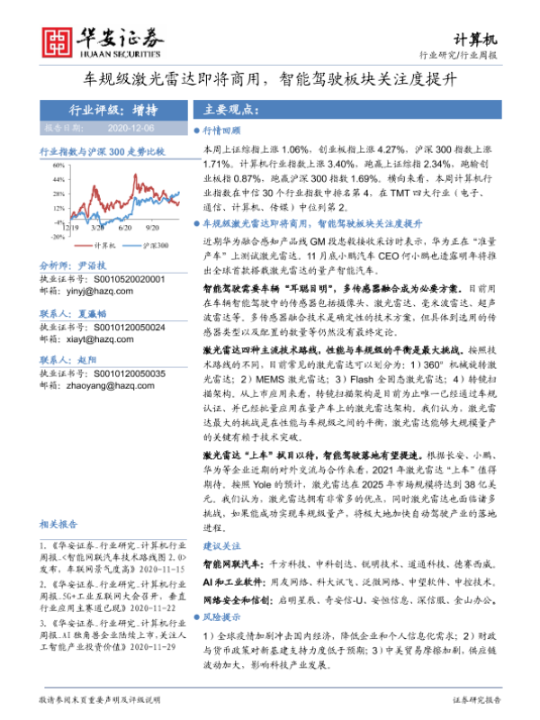 【华安证券】【20201206】20201206-华安证券-计算机行业周报:车规级激光雷达即将商用,智能驾驶板块关注度提升-18页 行业研究
