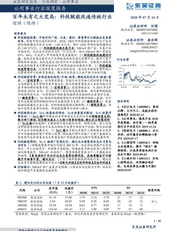 【东吴证券】【20200716】公用事业行业深度报告:百年未有之大变局:科技赋能改造传统行业-35页 行业研究