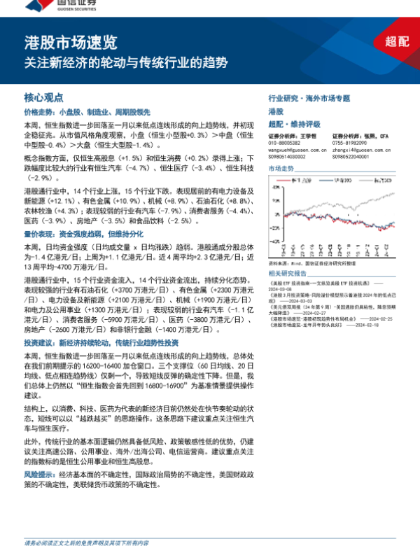【国信证券】【20240310】港股市场速览:关注新经济的轮动与传统行业的趋势-18页 行业研究