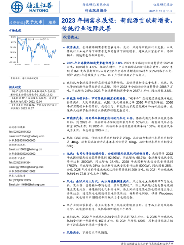 【海通证券】【20221213】2023年铜需求展望:新能源贡献新增量,传统行业边际改善-22页 行业研究