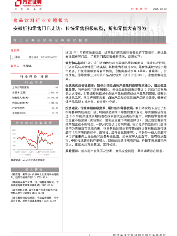 【方正证券】【20250303】食品饮料行业专题报告-安徽折扣零售门店走访:传统零售积极转型,折扣零售大有可为-7页 行业研究
