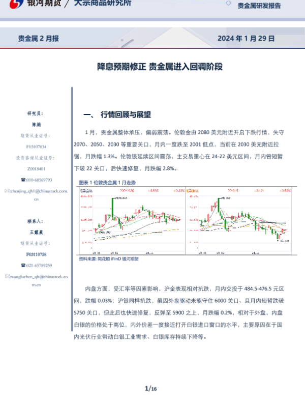【银河期货】【20240129】贵金属2月报:降息预期修正 贵金属进入回调阶段-16页 行业研究