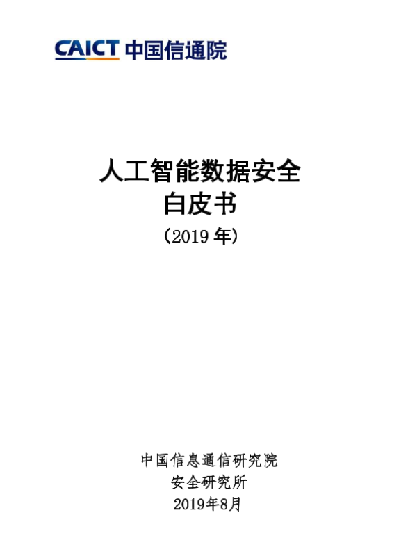 【中国信息通信研究院安全研究所】【201908】信通院-人工智能数据安全白皮书(2019)-51页 白皮书